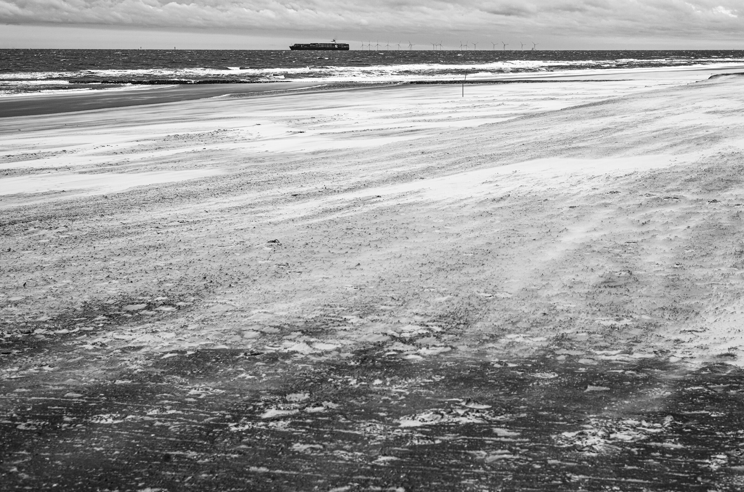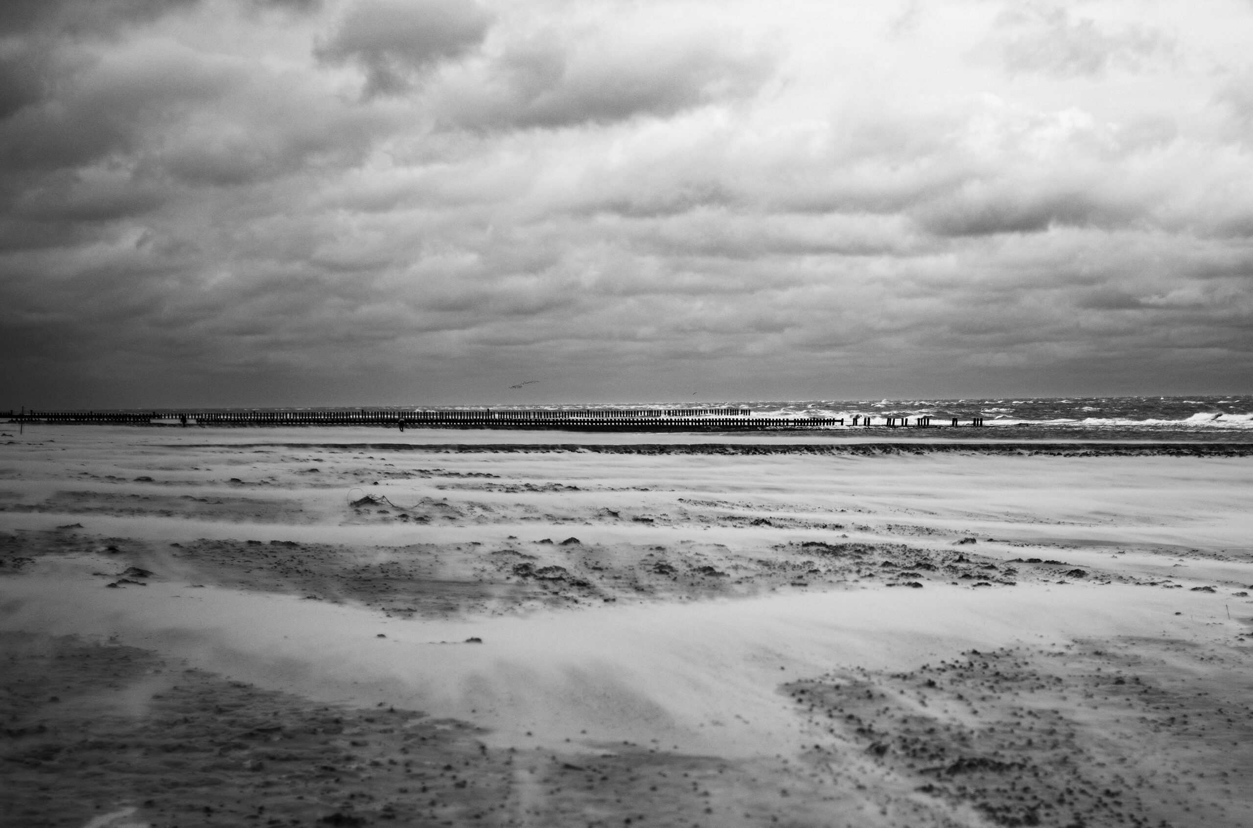 Raues Novemberlicht, peitschender Wind und die stille Weite Wangerooges prägen diese Schwarzweißserie.